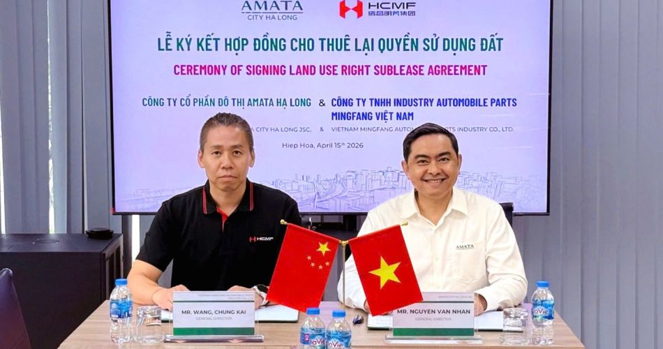 On April 15, 2026, Amata City Ha Long Joint Stock Company, led by Mr. Nguyen Van Nhan, General Director, and Vietnam Mingfang Automobile Parts Industry Co., Ltd., led by Mr. Wang Chung Kai, General Director, officially signed a Land Use Right Sublease Agreement at Amata City Ha Long Industria...