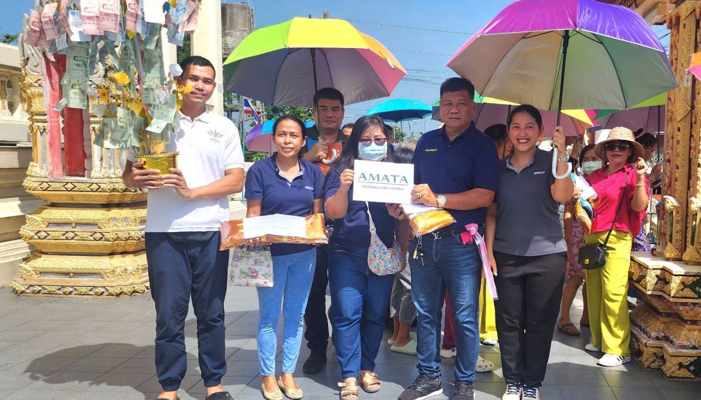 oday, the committed CSR team, in conjunction with employees from AMATA Group, wholeheartedly took part in local traditional Kathin celebrations. Working closely with communities surrounding AMATA City in Chonburi and AMATA City Rayong industrial estates, the team engaged with five temples in the neighborhoods of the industrial cities and one temple in Rayong. Their aim was to actively participate in, celebrate, and preserve this meaningful tradition, joining in the act of making merit together.