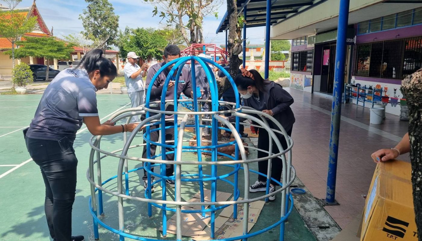 This event facilitated access to equitable technology for the students in the nearby area to support their education. A total value of 135,300 baht in computers, stationery, and books was donated. Additionally, the participants came together to paint the playground equipment and arrange recreational activities for the students.