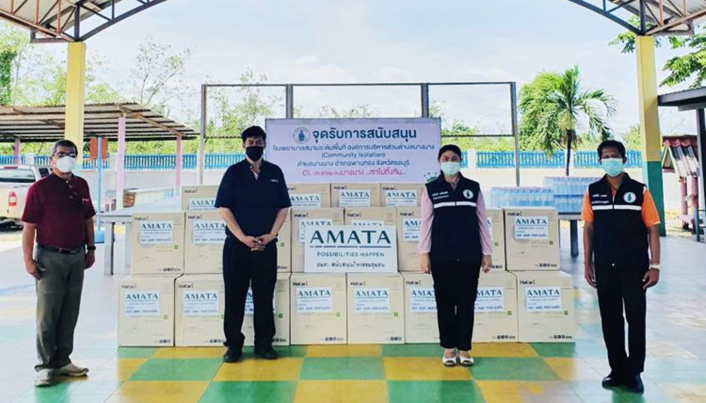 On July 29, July 30, August 2 and August 6, 2021, the CSR team of Amata City Chonburi distributed floor fans, drinking water, rice and eggs to four community isolation centers that have been set up in areas surrounding Amata City Industrial Estate Chonburi. Donations were provided to Koh Loy, Nong Mai Daeng, Klongtamru and Bang Nang Sub-Districts.