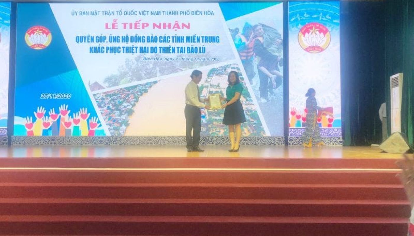 Amata City Bien Hoa Joint Stock Company was recently presented with a Certificate of Appreciation from the Vietnam Fatherland Front Committee, for their donation of VND50 million to assist the people of Central Vietnam.