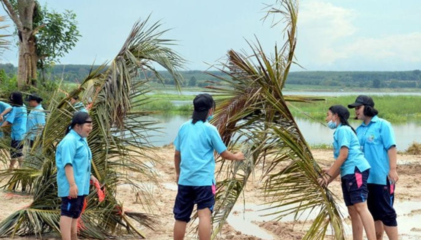 Students constructed traditional Thai floats made with palm leaves sourced from Amata’s industrial estate. Bound together in triangles and floated on the water, they provide an excellent natural food source for fish. At the same time, carbon from the decaying leaves can efficiently contribute to cleaner water.