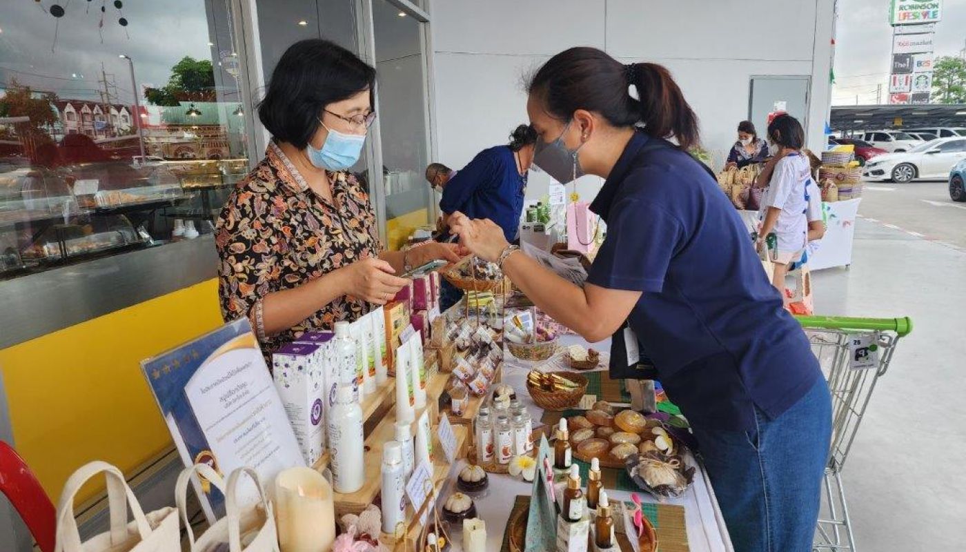 Amata's CSR team, led by Mr. Viboon Kromadit, Director and Chief Marketing Officer (pictured third from left), organized a second round of 'Chuan Shop' community products fair at the Robinson Department Stores in Chonburi. The project aims to help local producers selling their products such as clothing and bags, herbal products, organic vegetables, homemade foods etc. directly to consumers.