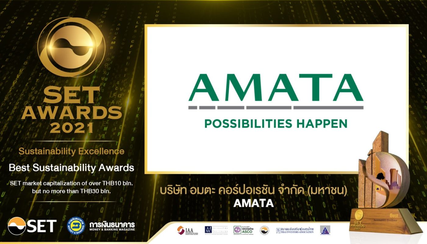 Amata Corporation PCL. (AMATA) was among the winners of the Stock Exchange of Thailand (SET) prestigious SET Awards 2021, receiving a “Best Sustainability Award” in the category of companies with securities valued at THB 10 – 30 billion.