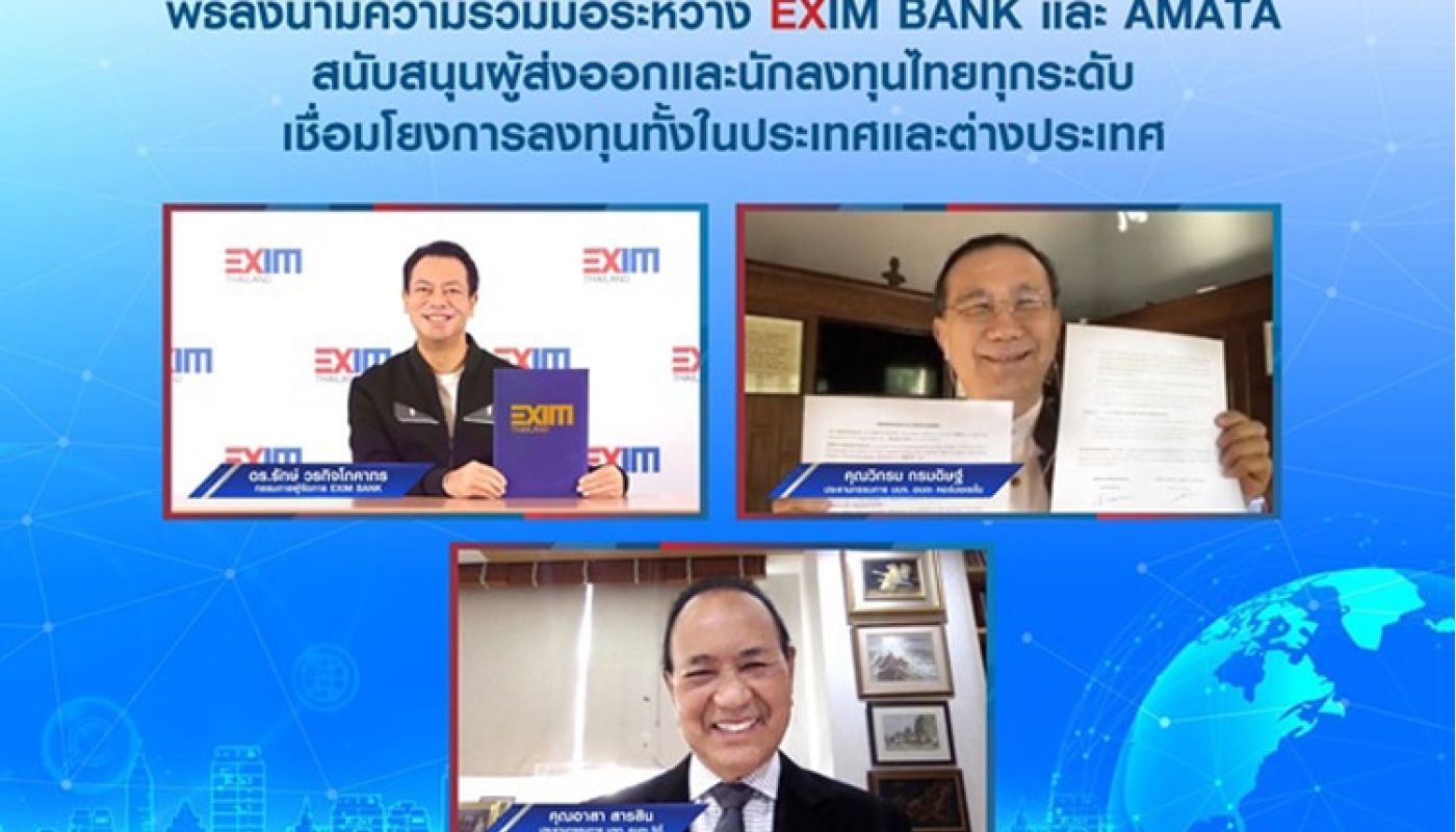 Export-Import Bank of Thailand (EXIM Bank) signed a MOU with Amata Corporation to support Amata's industrial estates operators in their access to financial sources and new trade and investment opportunities in and outside Thailand, in particular in the CLMV (Cambodia, Lao, Myanmar and Vietnam) region.