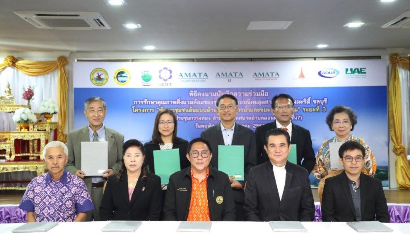 On October 26, 2023, AMATA Corporation Public Company Limited, referred to as AMATA, conducted a Memorandum of Understanding (MoU) Signing Ceremony for Phase 3 of the "Community Development in Sustainable Water and Waste Management" project. The nine collaborating partners include Don Hua Lo Subdistrict Municipality, Nong Mai Daeng Subdistrict Municipality, Na Pa Subdistrict Municipality, the Industrial Estate Authority of Thailand (IEAT), AMATA U Company Limited, AMATA Facility Service Company Limited, AMATA B.Grimm Power 1 Company Limited, Aqua Nishihara Corporation Co., Ltd., and United Analyst and Engineering Consultant Co., Ltd.