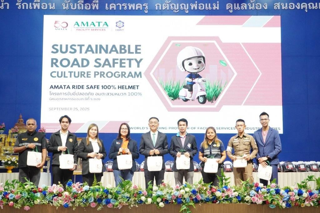 The project seeks to reduce injuries and fatalities caused by road accidents, with a particular focus on preventing head injuries—one of the leading causes of traffic-related deaths. During the event, 600 helmets were distributed to key stakeholders, including business operators, community leaders, contractors, Amata employees, and especially students, to instill safety awareness from an early age.