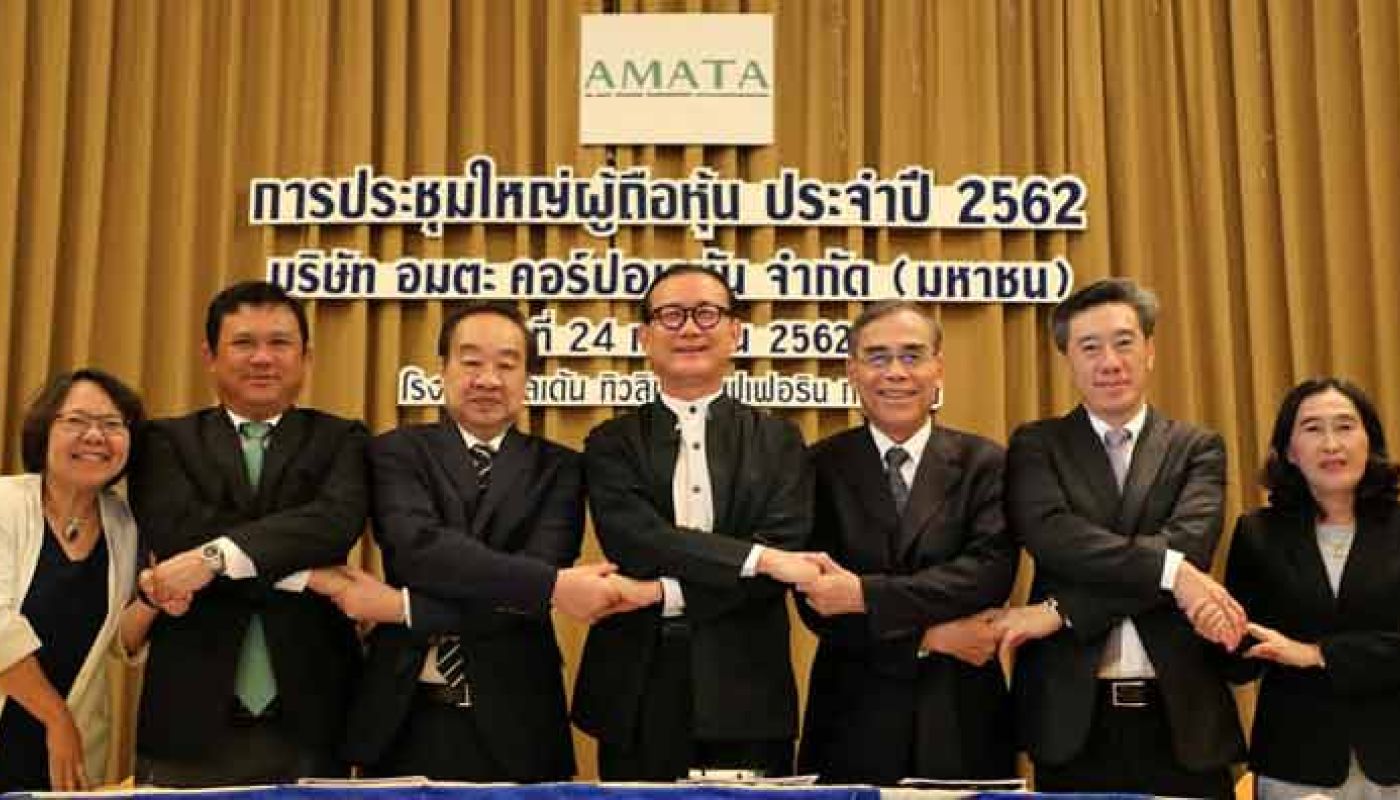Chairman Board of Directors, Vikrom Kromadit presided over the annual shareholders meeting 2019 at Golden Tulip Hotel. Amata Corporation PCL. was listed on the Stock Exchange of Thailand in 1997. For more information about the company's financial performance and other reports, please visit the investor relations section.