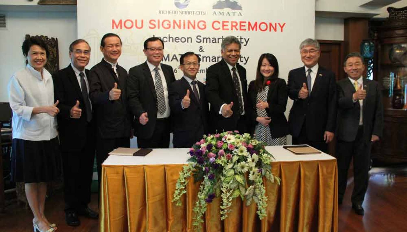 Dr. Surin Pitsuwan, Chairman of the Board of Directors (seated, centered) and Somhatai Panichewa, Director and CEO (standing, second from right) of Amata VN PCL. alongside Members of the Board presided over the annual shareholder’s meeting. Amata VN PCL is a holding company for Amata businesses in Vietnam, listed on the Stock Exchange of Thailand.
