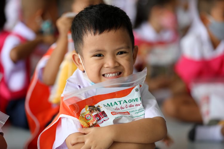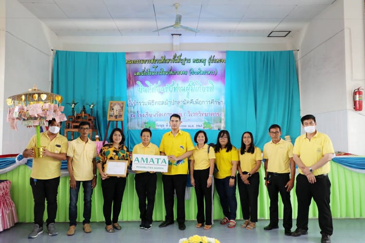 On August 11, in honor of Her Majesty the Queen Mother's birthday, and to celebrate the national Mother’s Day, Amata Senior Vice President of Sales Operations Songchom Tangnawapan and Amata staff visited Intharam Temple School at Ban Pho district, Chachoengsao, to present scholarships and gifts to students.