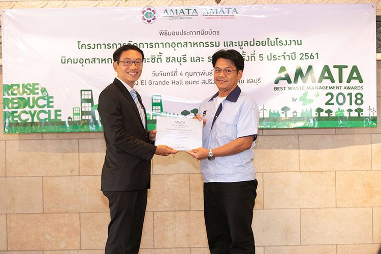The Best Waste Management Award was initiated by Amata's subsidiary, Amata Facility Service (AFS) company to encourage customer to implement efficient waste management by adopting the 3R rule: Reduce, Reuse, Recycle.