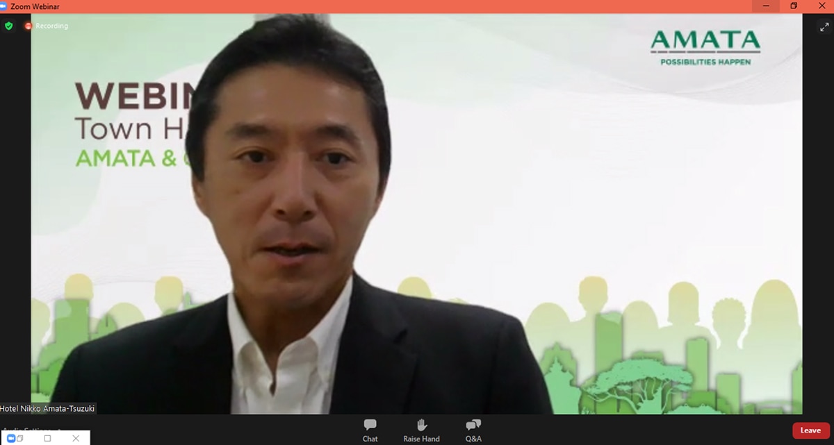 In a first session of Amata's town hall meetings this year, Amata conducted a Japanese-language webinar. Mr. Chanin Khaochan, Deputy Secretary General, Thailand Board of Investment, Ms. Kanakporn Chotipal, Director of BOI Office in Tokyo and Minister (Economic and Investment) of the Royal Thai Embassy to Japan, delivered opening remarks.